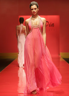 Simple gowns in gold, white and nudes with shoulder and bust embroidery started the show as models walked in from under an archway of flowers. These were followed by bohemian chic dresses with snake, leopard and other digital prints in pink, grey and silver. Gowns in varying intensities of red, orange, gold, emerald and lilac followed, in a bid to joyously usher in springtime.